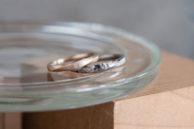 ネットで色々調べている際に、可愛らしく自分好みの雰囲気のお店だったため目に留まりました。指輪のテクスチャー、素材、形などを自分で決められるので、かなり幅広いデザインから検討することができます。また、試作品を1週間ほど試着できるので、着け心地などを確認したうえで安心してオーダーできます。