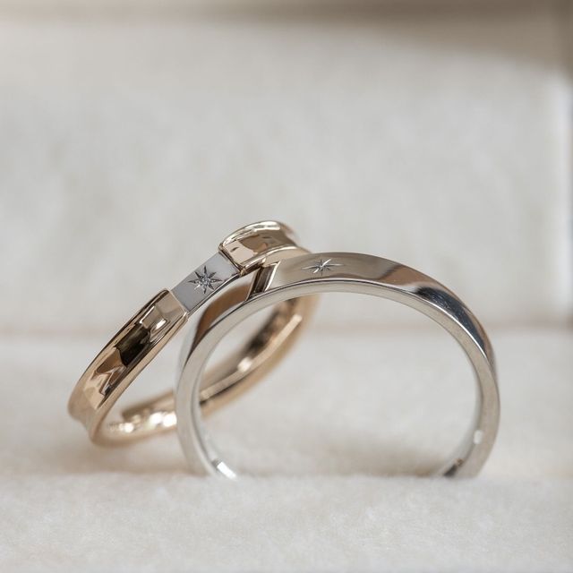 そして、夫の指輪にも星彫りのみを入れることもできると教えてくださったので、指輪の造形は違うデザインでも星彫りによってペア感が出ると考え、夫の指輪にも星彫りを入れました。