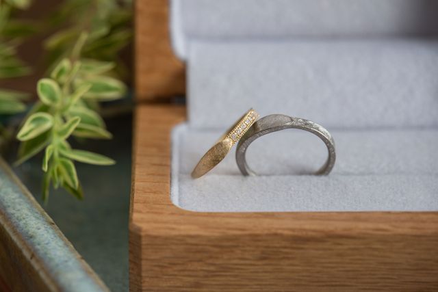 同じデザインでも石の有無など、お互いの好みを選択できるので、お互いが満足できる指輪を作製できました。
