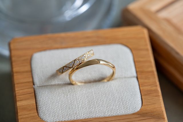 2人の好みや似合うものが異なったため、色味のみ統一となりましたがそれぞれが満足のいくデザインの指輪を作ることができました。