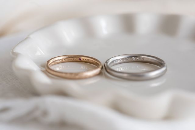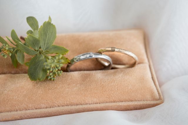 またどちらの指輪も左右で素材の違いも楽しめます。