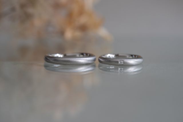 既製品だと指輪の半分を異なった雰囲気にすることが出来づらいですが、セミオーダーなので、半分を一部が細くなったキラキラした素材にして、もう半分をマットな質感のまっすぐなリングに出来ました。気分によって表の見えやすい部分を変えられるので、とても満足しています。
