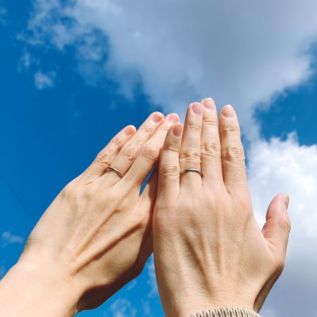 シンプルながらも、表面のぽこぽことした自然なテクスチャーが魅力の指輪です。肌になじみやすく、さりげない個性が出せます。結婚指輪として同じデザインを選びつつ、色は自由に変えられるため、お互いの好みに合わせてカスタマイズできる点もおすすめです。