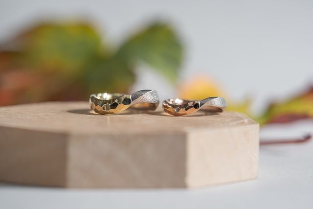 素材や色味などを実際に見ながらオーダーメイドできました。自由度が高く細部までカスタマイズできたため、ふたりのこだわりを出せたところが良かったです。ふたりらしい特別な指輪を作ることが出来、大変満足です!