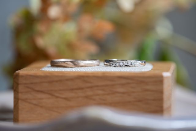 指輪の色が6種類から選べる所がお互いの好みに合わせる事が出来ます。それぞれ色が違っていても、デザインを統一する事でリンク感も出て、テクスチェーでもデザインを変えられる所がおすすめです。旦那さんと私のテクスチェーも同じ所と変えた所とこだわったポイントもあります。