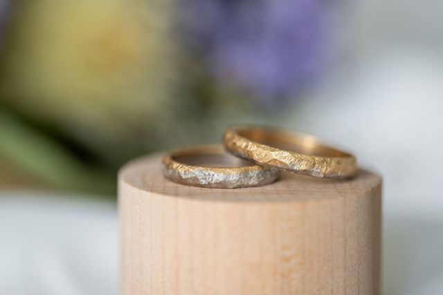 人とは違う結婚指輪が欲しくてお願いしました。途中試作品で実際のデザイン着け心地等確認も出来たので安心して仕上がりまで待つ事が出来ました。希望通りの素敵なデザインの仕上がりでとても満足してます。試作品ではプラスマイナスワンサイズの試着もでき、結果的にオーダー時よりワンサイズ大きくして頂きました。長く身につけるリングですので試作品の試着でサイズ確認できて良かったです。