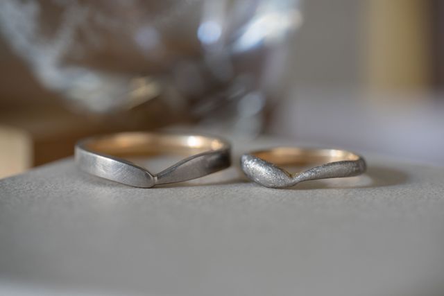 有名ブランドやインスタでいろいろな指輪を見てみましたが、唯一“かわいい!”と思えたのがカヨフさんの指輪でした!他にはないデザインと素材や質感を自由にオーダーできること、遠方でもオンラインでオーダーできるのが今回こちらを選んだ決め手になりました!