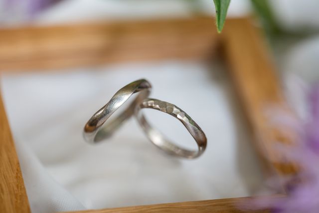 お店は自由が丘らしい洒落た雰囲気です。スタッフの方も丁寧で、来店時のやりとりだけでなくLINEでの問い合わせにもきめ細やかに対応してもらえました。素材やテクスチャーを選ぶ際には、照度を落とした店内と自然光の当たる店頭の両方で指輪を見せてもらえました。