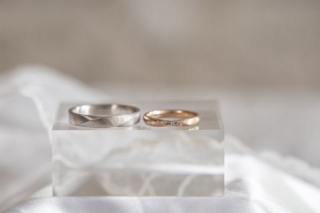 ペア感を全面に出すよりも、各々の好きなテイストを出しながら、ねじりのデザインで揃えました。