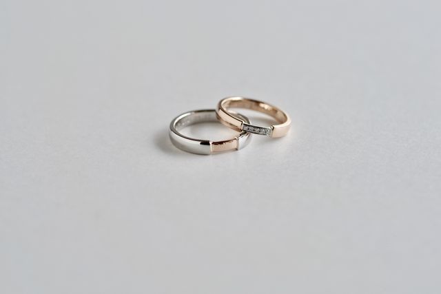 私の大好きなピンクゴールドと夫の欲しかったプラチナの指輪を架け橋のような繋ぐデザインで、お互いの素材を入れ換える、そんな希望を叶えてくれました。太さや厚さ、甲丸など、細かい部分もサンプリングさせてもらい作ることが出来ました。また、サンプルリングでの出来映えが素晴らしすぎて即決でした。