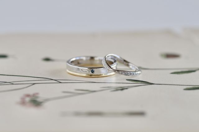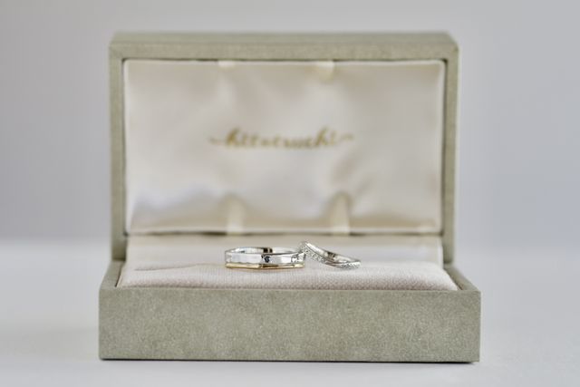 他にありそうでないデザインが決め手でした。うちはそれぞれ拘りがあるので、あえてペアデザインにはせず、各々気に入ったリングを選びました。