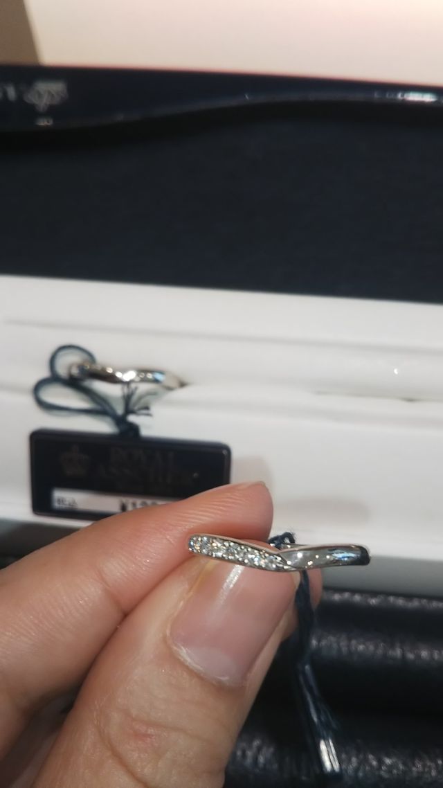 普段つかうときは、指輪をまわしてダイヤモンドを見せないようにもできるので、普段使いもできるのでいいとのことでした。
