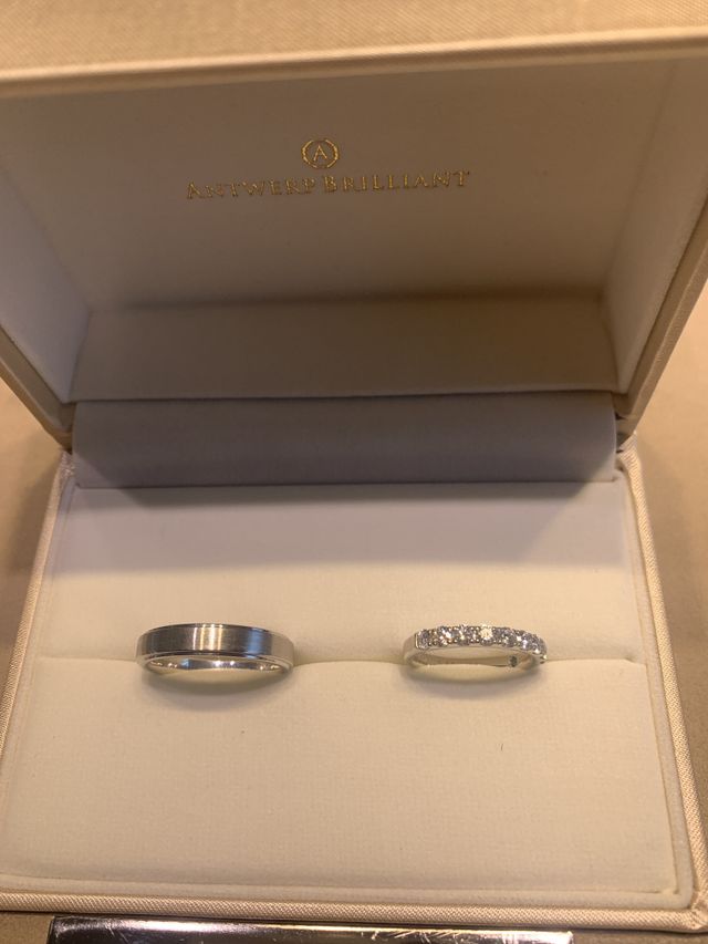 たくさんの指輪を見ましたが、ダイヤの輝き方が他と比べると明らかに七色に綺麗に光っていました。他にはダイヤの埋め込み方が綺麗で傷がつきにくいということ、旦那の方の指輪も加工ができ、オリジナルのものを作れたということが決め手です。