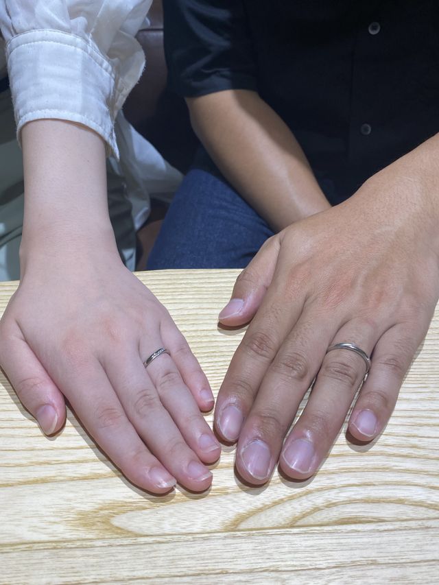 国内ブランドが良いと考えており、その中で、独自のコンセプトを持った出雲結の指輪に魅力を感じたからです。特に、私たちが選んだ「風結」はデザインにも込められた意味にも惹かれたため、こちらの指輪に決めました。