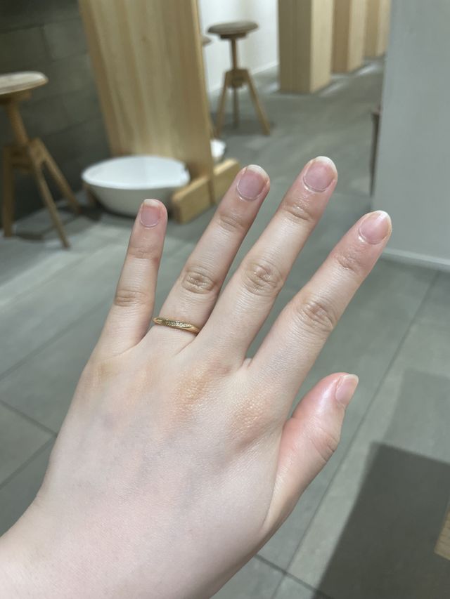 店内は木が多く使われており落ち着く雰囲気でした。飲み物を用意してくださったりお菓子も出していただき、丁寧な接客が好印象です。指輪受け取りの際、写真も撮っていただき、それを送ってくださり良い思い出になりました。
