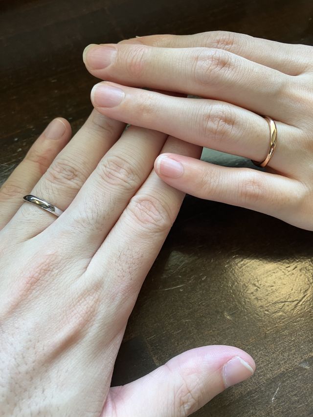 シンプルだけど飽きがこない普遍的なデザインに惹かれました。また、出雲大社の近くの店舗なので参拝も兼ねて行けることも良いなと思いました。初めての島根旅行の思い出も指輪と一緒に記憶に刻むことができるので指輪に対する愛着も湧くのではないかと考え決めました。