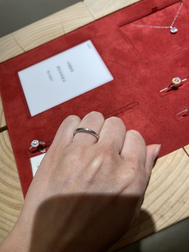 シンプルなデザインでありながらも、表面にマットな加工ができたりと、個性的なアレンジもしやすい指輪だと思いました。少し角があるシャープなデザインなので可愛すぎず、男性にも身に付けてもらいやすいと思います。