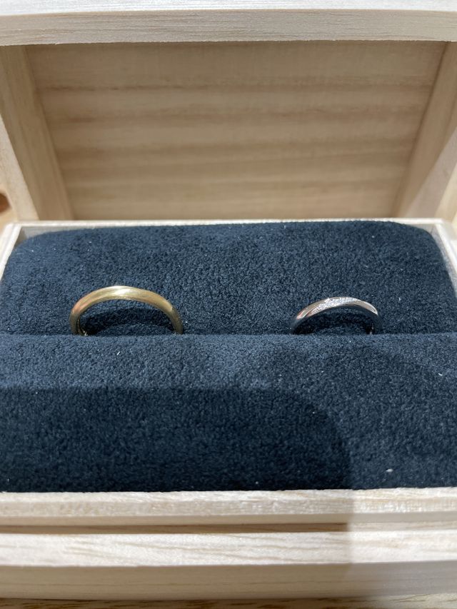 デザインは大きく10種類弱から選ぶことができたので、二人で話し合って試着して決めました。