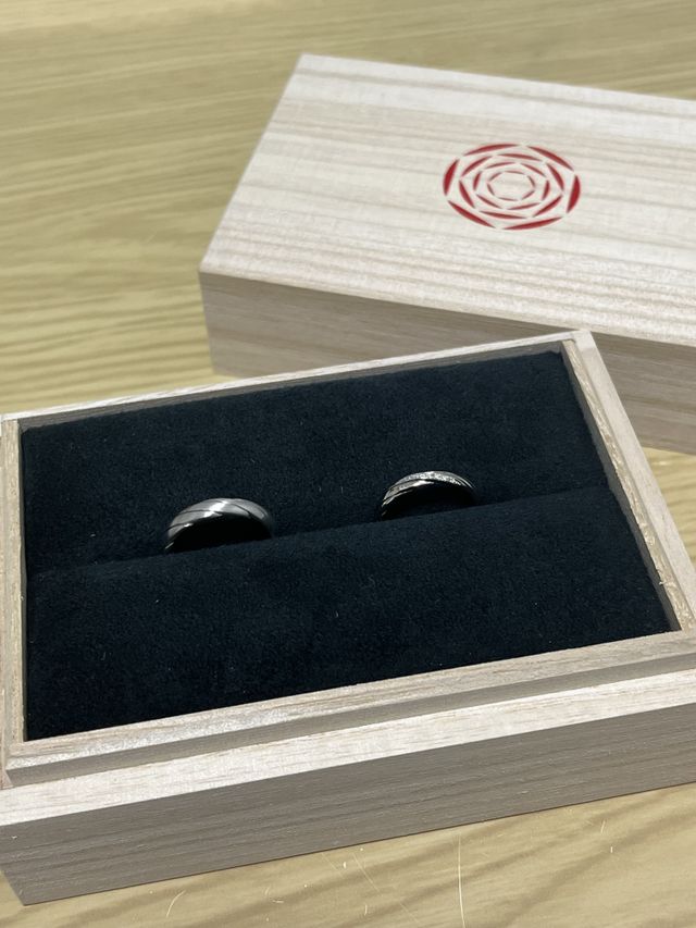 店舗には一度も行かず、全てオンラインでやり取りを行いましたが、サンプルを頼んだ時、実際に指輪をお送りいただいた時には直筆の手紙が同封されてあるなど、とても丁寧な対応に驚きました。また試着について、全ての商品を家で試すことができた点が多忙な私たちには大変ありがたかったです。