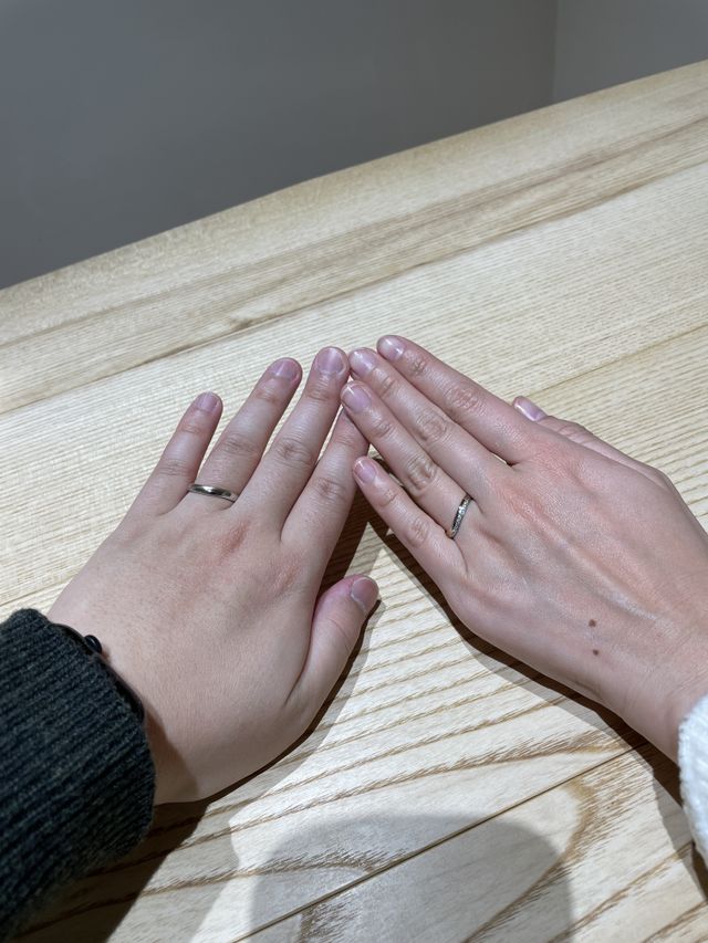 出雲結のコンセプトのもと、デザインが複数ありながら、気に入ったデザインを自分なりに形作ることができ素敵でした。2人の好みに合う指輪を見つけることができた。