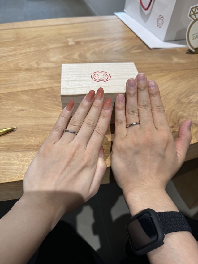それぞれの指輪に異なる想いが込められていて、形も異なり、選ぶのも楽しかったです。出雲という、日本らしい、格式のある場所にお店があり、結婚という節目にぴったりだと感じた。人気となり、完成まですこし時間はかかるがまた時間もとても楽しみだった。