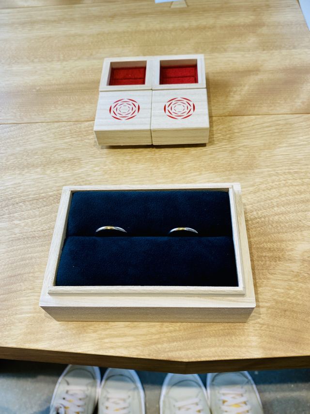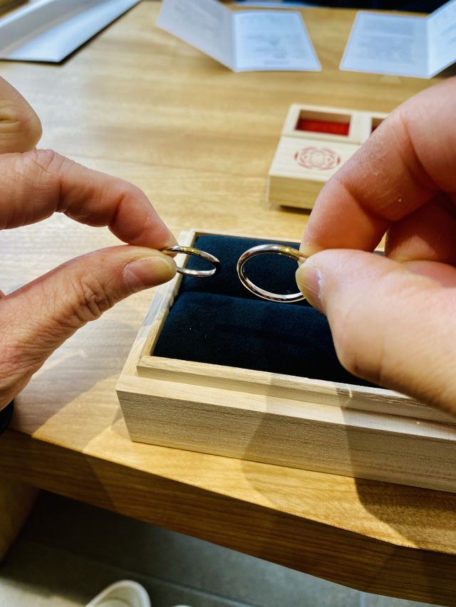 元々私達には指輪ブランドに対する意識は全くありませんでした。ですので探し始めた時は、指輪のコンセプトや意味と想いをWebで検索しましたが、そこで初めにヒットしたのがこの「出雲結」でした。縁結びで有名な出雲大社の側に本店を構えており、婚約及び結婚指輪に対する想いに非常に魅力を感じました。更に、デザインやコンセプト、そして指輪達の名前にも日本らしい名前が付けられいたことに私達はとても感銘しました。