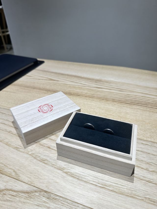 サンライズ出雲で年に1回、2人で出雲に行っていたので、その地にゆかりのある指輪が欲しいと考えていました。一つひとつの指輪のコンセプトが良く、日本らしい雰囲気が気に入りました。デザインも落ち着きがあり、いくつになってもつけられると思います。