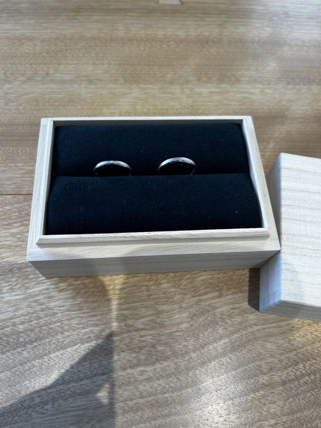 また、私の方(女性)の方には誕生日月の石を入れました。男性の方には女性が入れた石とは対照的な石をいれました。指輪にホーニング加工をしていただいたので見た目もよく飽きがこないような指輪にしました。