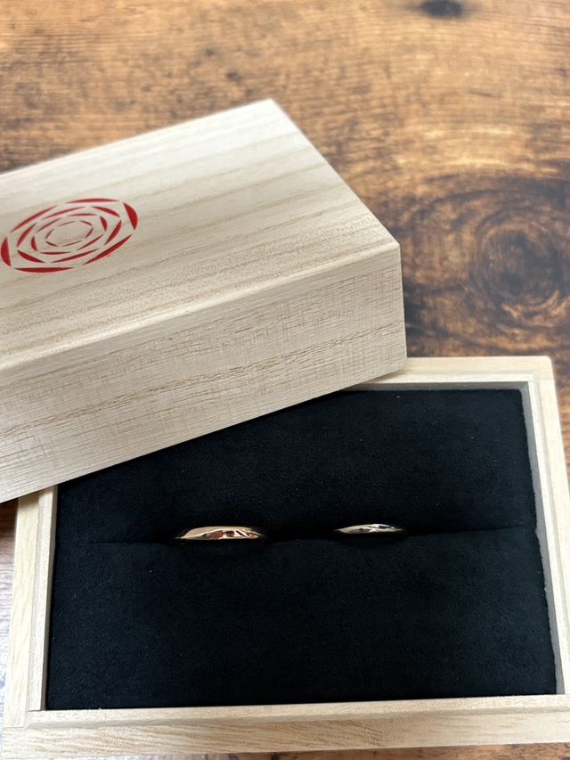 日本の歴史や文化などを大切にし、また、それを感じることができる素敵なブランドだと思います。私たち二人は「縁」を大切にしていきたいと思っていました。私たちの思いと重なる、素敵な指輪に出会えることできたと思います。