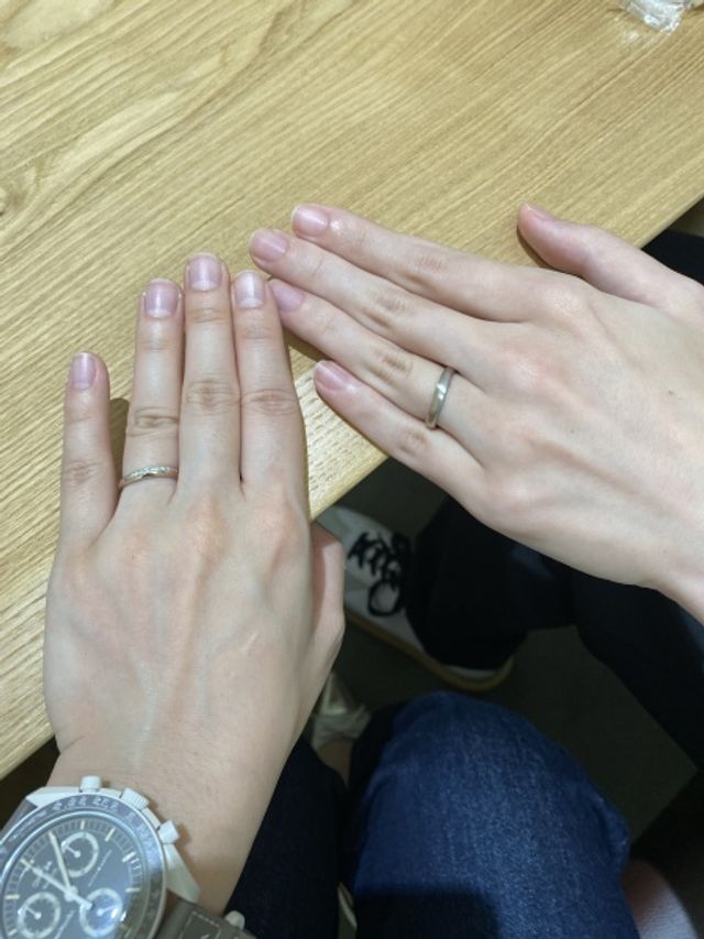 指輪ごとにデザインや素材だけでなく、込められた想いや意味があることを知り、見た目の好みだけでなく「どんな想いを身につけたいか」という視点でも選ぶことができました。その過程も私たちらしい時間になりました。