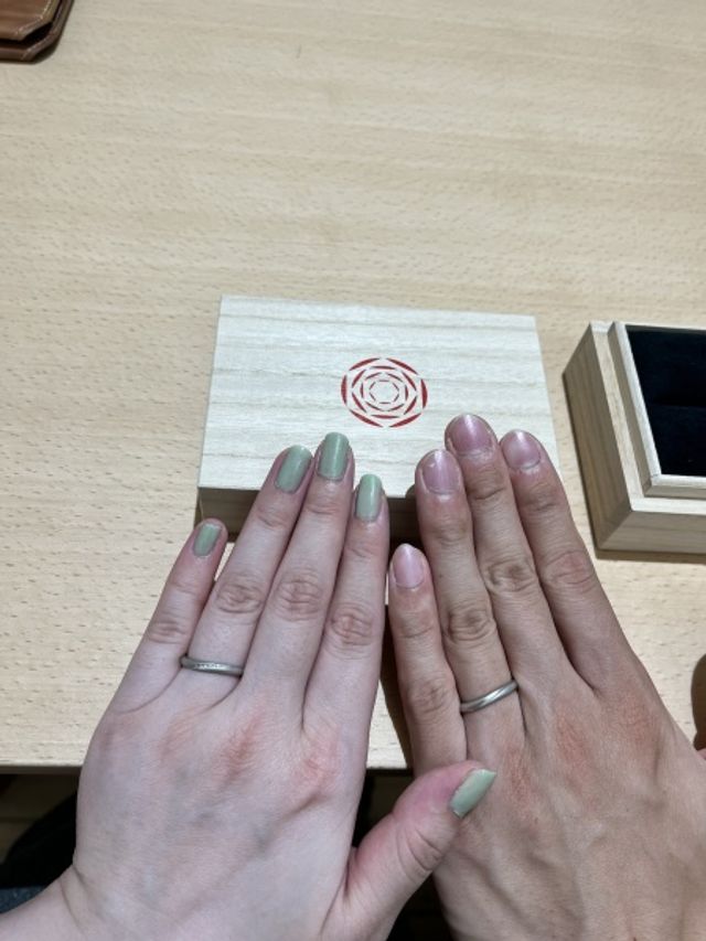 指輪に込められた想いやエピソードがとても奥深く、店舗でお話を聞いている時期から、いいな。と思い始め、実際にはめて自分達の理想の指輪になる様に話しながら決めれる。理想の指輪が完成しからは、受け取れる日が楽しみ過ぎました!