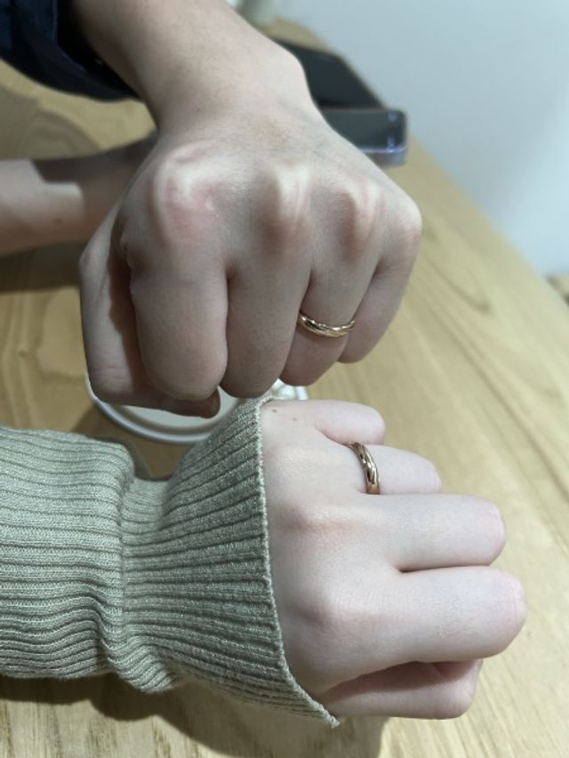 ピンクゴールドの色と、しめ縄のデザインに惹かれて選びました。手元をよく使う接客業なので、石などがなく、なるべくシンプルで、でも少しこだわりは持ちたいと思って、この色とデザインにしました。1番出雲結らしいデザインだと思います。