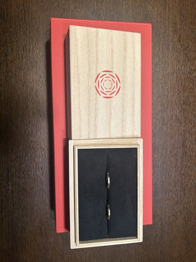 シンプルなデザインですが、様々な素材、様々な加工からふたりが納得できる組合せで選びました。