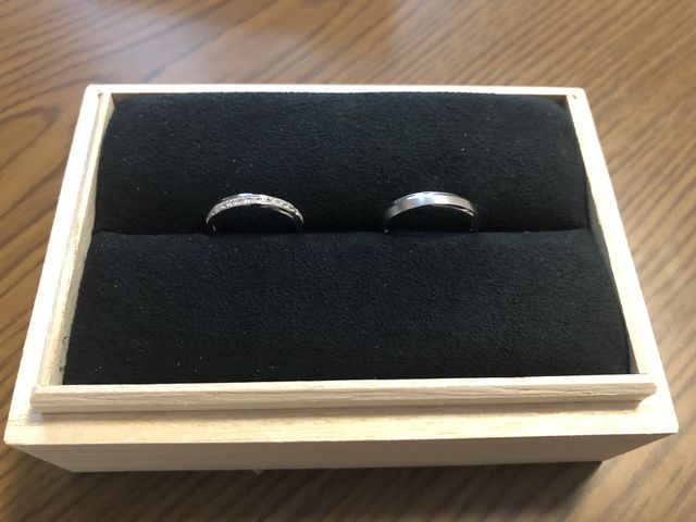 指輪のデザインそれぞれにコンセプトがあり、一つ一つ丁寧に説明してもらい、二人で納得できるデザイン、コンセプトのものにしました。女性用のリングも石がたくさん並んでおり初め見た時は派手かな?と思いましたがライトアップされた状態のものを見てそこまで派手ではなく落ち着いたデザインのためこの二組を選びました。