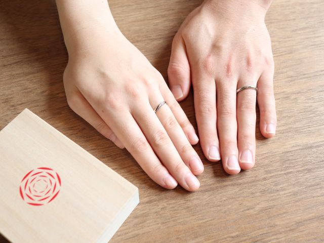 出雲結という名前に、それぞれについている可愛らしい名前、シンプルなデザインに惹かれました。指輪の太さやデザインが理想的で、お互いに気に入った風結を選びました。つけ心地も良く、仕上がりに大変満足しています。