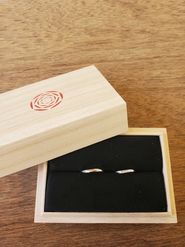 雑誌で結婚指輪を見ていたら出雲結というブランドがあることを知り、地元のブランドで和風のコンセプトが気に入りました。風結という指輪のデザインに一目惚れし、実物をみて、試着させてもらいこの指輪がいいなと思いました。