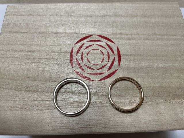 出雲旅行のついでに大社本店さんにお邪魔させていただきました。シンプルな結婚指輪を探しておりましたが、当初気になっていたデザインは実際に試着してみると少しイメージと違い、試着していく中で2人ともとてもしっくりくるデザインがあり、購入しました。