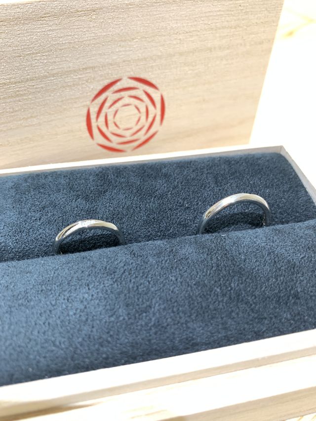 デザインがシンプルで、落ち着いた雰囲気の指輪が二人の控えめなイメージにぴったり合っていると思った事が選んだ決め手です。