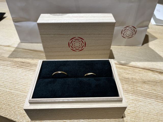 携帯のSNSの広告に出てきたことが「出雲結」を知ったきっかけです。もともと神社巡りが好きで、出雲に因んだ素敵なデザインと各種類に込められた想いに惹かれました!サンプルリングを無料で届けてもらえるので、自宅でゆっくり選べ、私たちの場合は、ある程度決めた状態で、浅草店で契約しました。