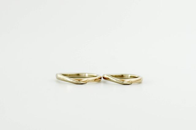 アトリエクラムさんの指輪のデザインに一目惚れして、こちらで作っていただくことに決めました。最初はプラチナ素材で考えていたのですが、ゴールドでもさまざまな色があり、最終的にはプラチナではなくゴールド素材2色のコンビにしました。
