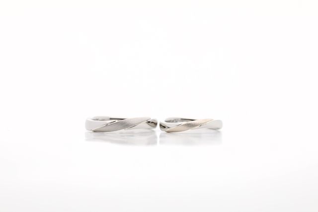 普段使いしやすく、あまり派手にならないデザインを選びました。シルバー系が好きな彼と、ゴールド系が好きな私なので、お互いの好みを尊重したいと思い、このデューミックスを選びました。色味が違っても、形が同じ所がお気に入りです!