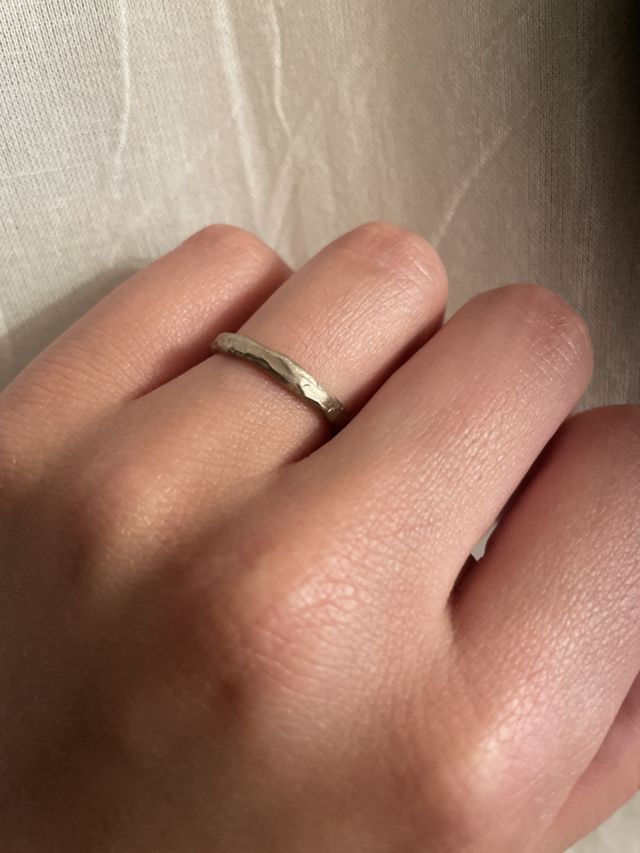 普段全くアクセサリーなどをつけない生活していましたが、今では毎日この指輪を眺めて嬉しい気持ちになっています。この指輪にしてよかったです。