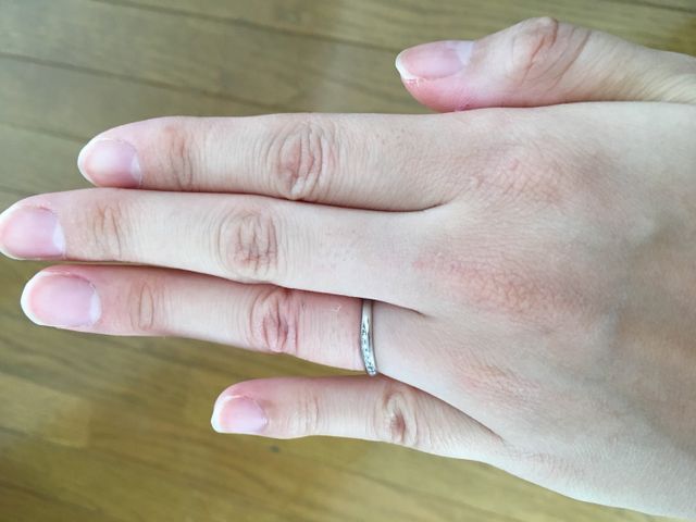 リングのウェーブの形と、ダイヤモンドの豪華さで指先がとても綺麗にみえると思い、後日購入させていただきました。