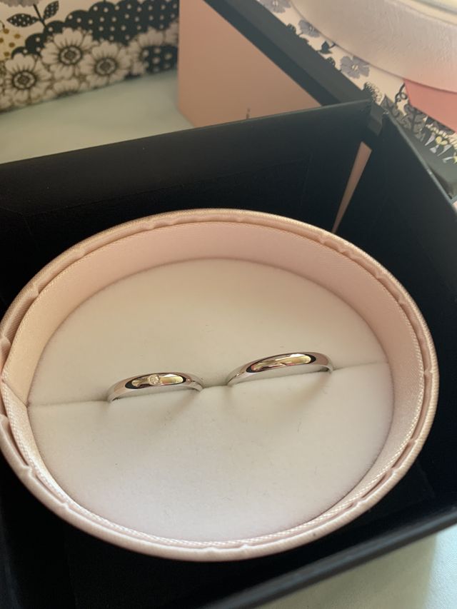 シンプルで価格もお手頃なところ。長くつけられるようにいろいろなデザインをみていましたが、悩んだ結果シンプルな方が長くつけられると思い、王道のデザインを選びました。ダイヤも小さく埋め込まれており品もあると思い気に入りました。