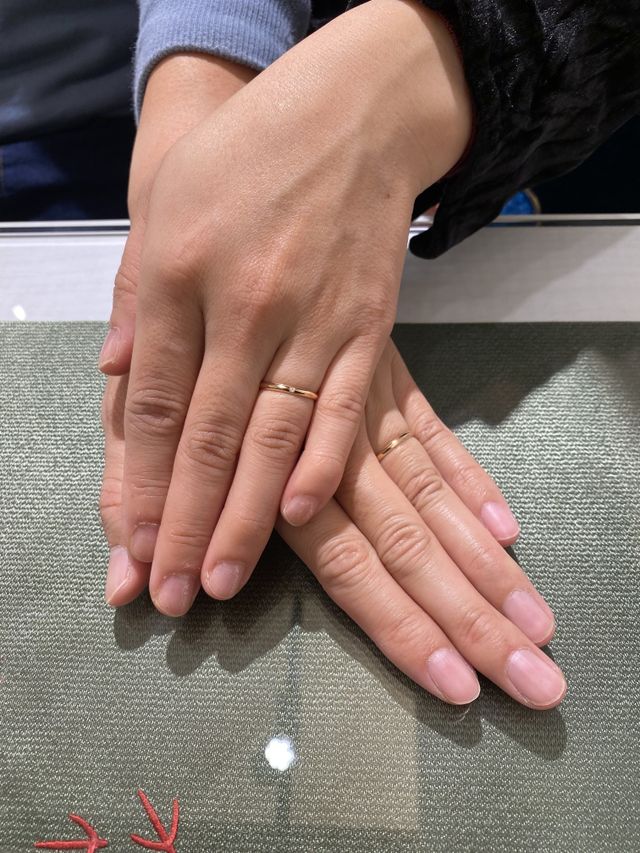 控えめですが、品のある印象です。装飾品に頼らないすっきりとした指輪の流線美が特徴かなと思います。主人は指輪の裏側に宝石が入ったデザインなのですが、こういった隠れた装飾の工夫ができる点も素敵な魅力だなと思いました。