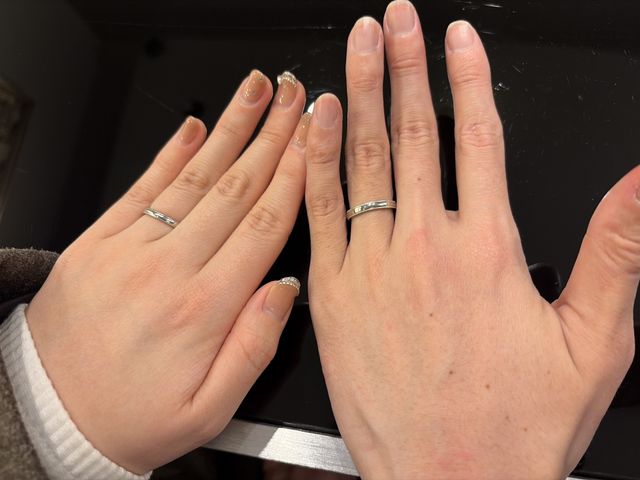 エッジ加工、甲丸加工、つやのセミオーダーで注文させていただきました。自分たちの好みに合わせた、細かいオーダーに対応していただき満足の指輪となりました。付け心地にこだわりつつ、デザインも重視させていただきました。