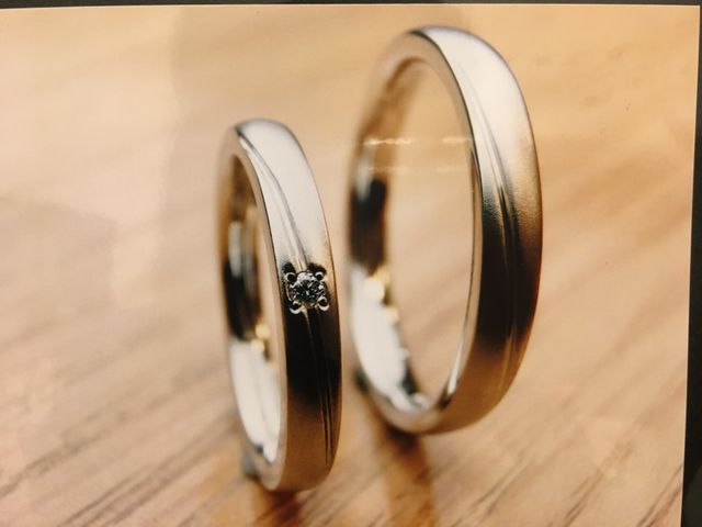 更にお互いの指輪の裏には記念日とイニシャルを彫ってもらい、イニシャルの間には誕生石を入れました。