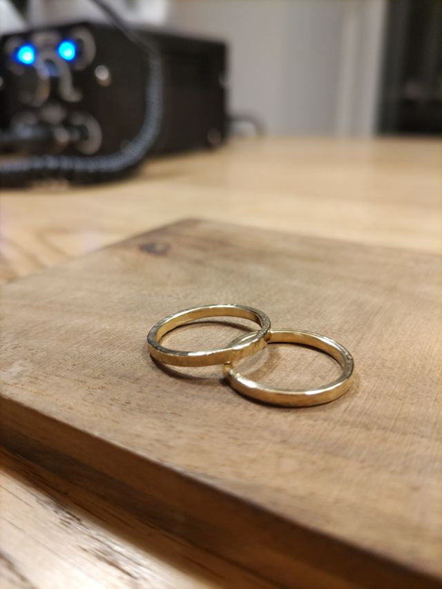 作成できる指輪の種類が多く、目移りしてしまうほどでした。シンプルなデザインが好きだったので、特にひねりや柄は入れませんでした。お互いの誕生石と婚約日の刻印を内側に入れました。