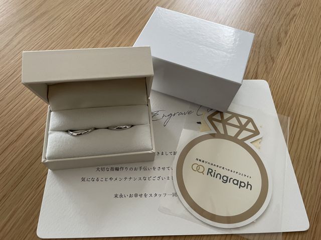 店員さんがとても親身に指輪作りに付き合ってくれるので、とても気持ちよく作成ができました。当日体調が悪かったのですが、飲み物や膝掛けなど貸していただき本当に助かりました。一生に一度の指輪作りなのでとても良い思い出になりました。