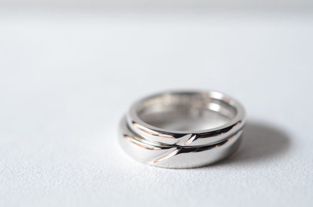 手作りで自分好みのデザインで作りたかった、素材は結婚指輪に合わせてプラチナで作ってもらいました、既製品でもたくさんいいものはあると思いますが自分たちで作ることでデザインもそうですが思い出に残る指輪ができたと思ってます
